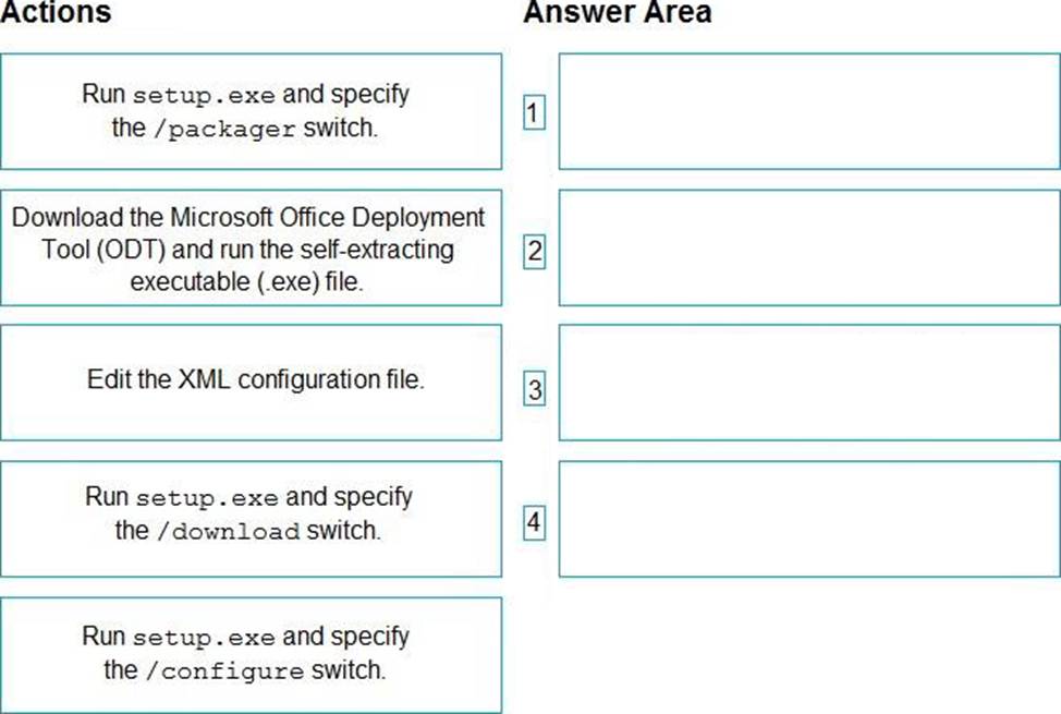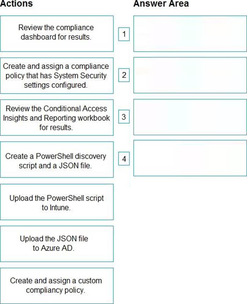 Which four actions should you perform in sequence? To answer, move the appropriate actions from the list of actions to the answer area and arrange them in the correct order.