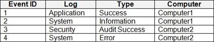 The computers have the logged events shown in the following table.