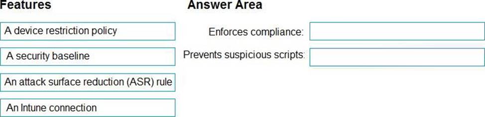 What should you configure? To answer, drag the appropriate features to the correct requirements. Each feature may be used once, more than once, or not at all. You may need to drag the split bar between panes or scroll to view content. NOTE: Each correct selection is worth one point.