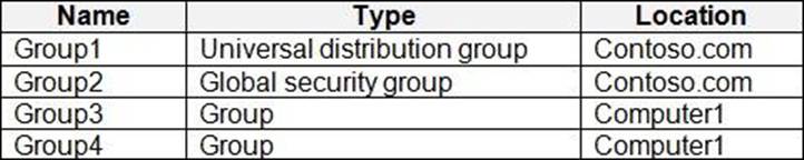 You have the groups shown in the following table.