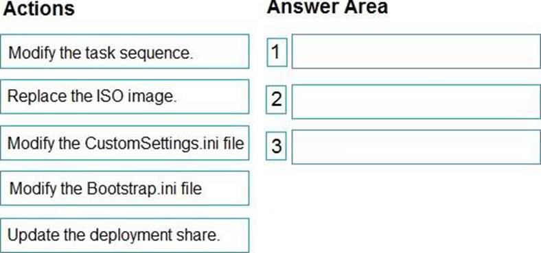 Which three actions should you perform in sequence? To answer move the appropriate actions from the list of actions to the answer area and arrange them in the correct order.