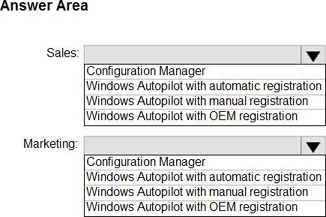 • Devices for The sales department must be Azure AD joined. The devices will be shipped directly from the manufacturer to The homes of the sales department users.