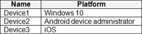 You have an Azure AD tenant named contoso.com that contains the devices shown in the following table.