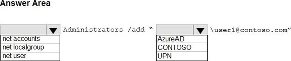 How should you complete the command? To answer, select the appropriate options in the answer