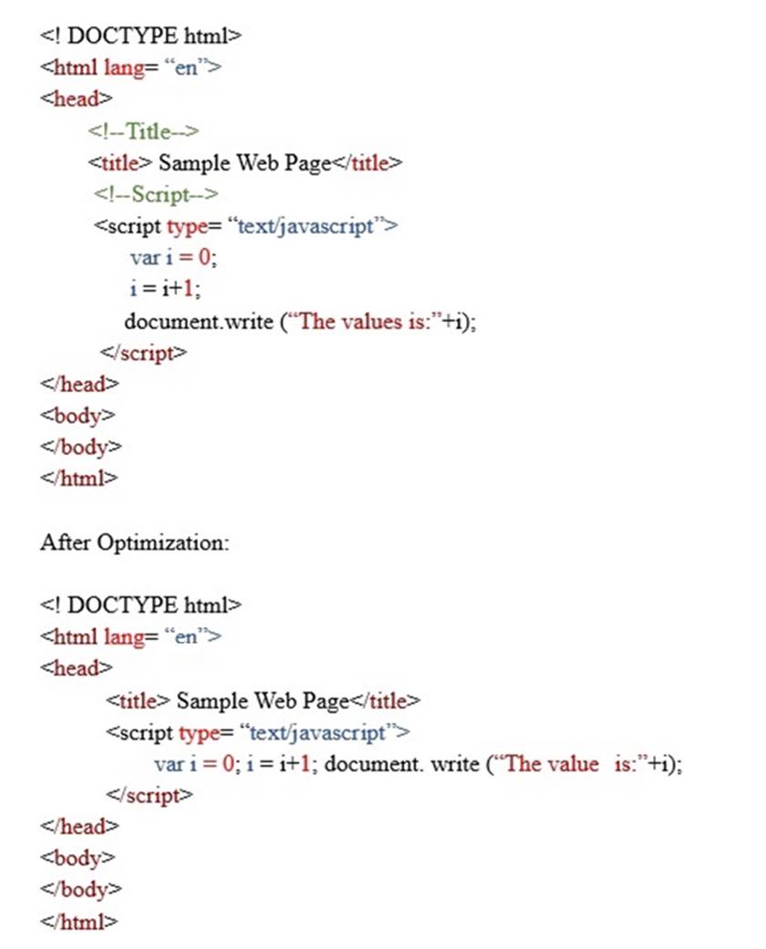 15. A Citrix Engineer has deployed Front-end Optimization on NetScaler. The following are the snippets of the content before and after optimization.