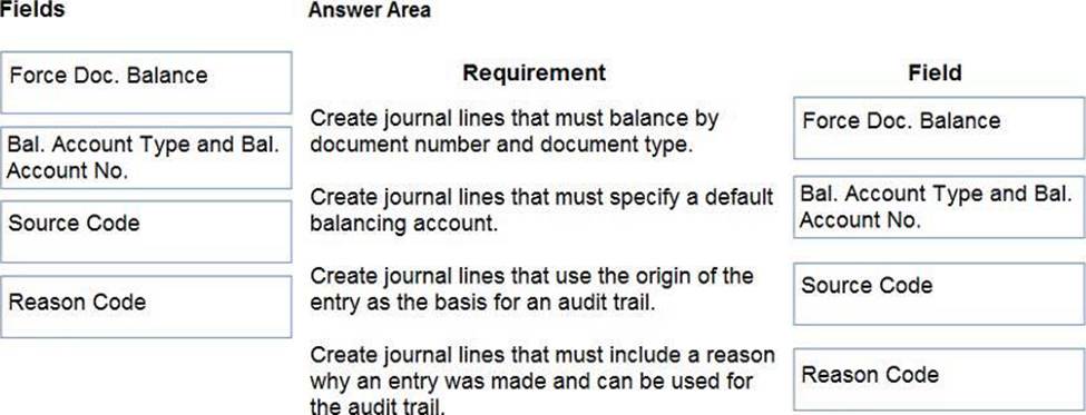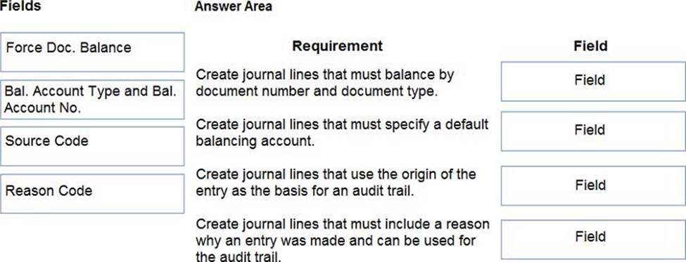 What should you do? To answer, drag the appropriate fields to the correct requirements. Each field may be used once, more than once, or not at all. You may need to drag the split bar between panes or scroll to view content. NOTE: Each correct selection is worth one point.