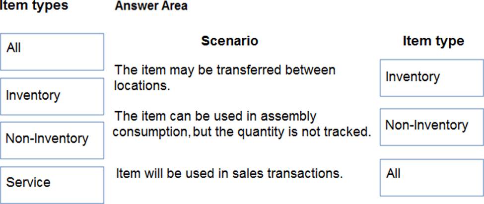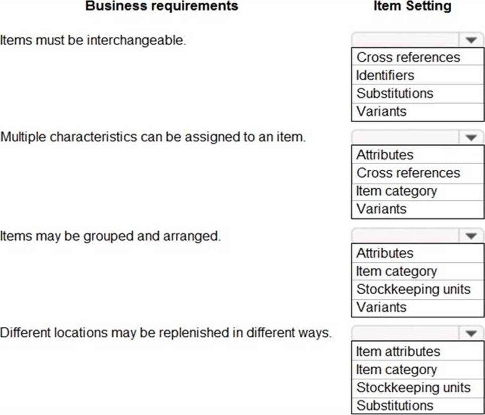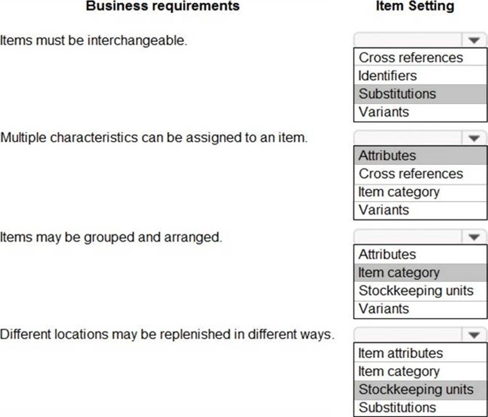 Which item settings should you use? To answer, select the appropriate options in the answer area. NOTE: Each correct selection is worth one point.