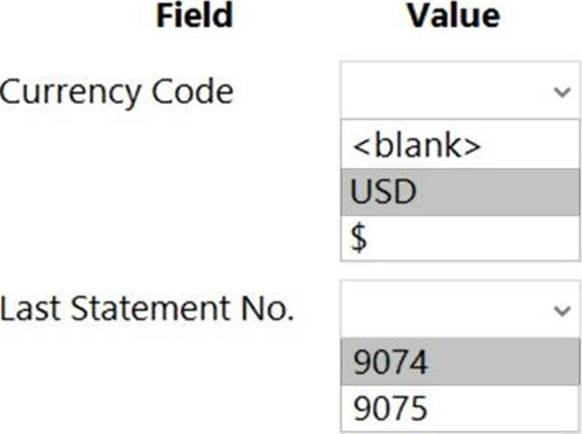 ✑ Use 9075 as the number of the next bank account statement for reconciliation in Business Central.