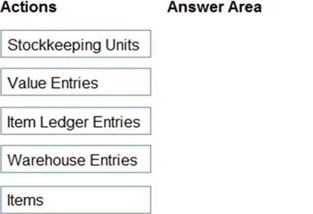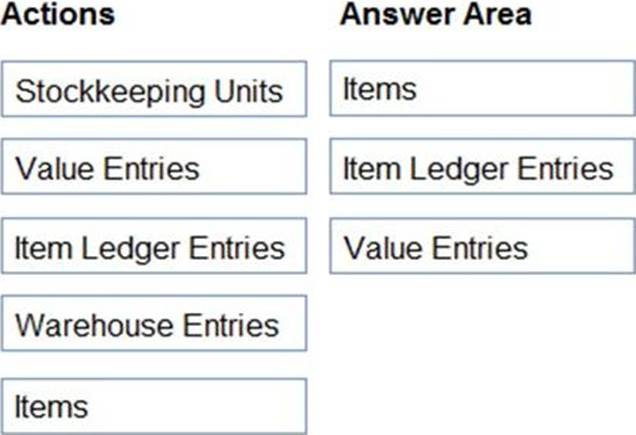 What is the hierarchical order of the elements included in inventory posting beginning with the master data? To answer, move the appropriate three entities from the list of actions to the answer area and arrange them in the correct order.