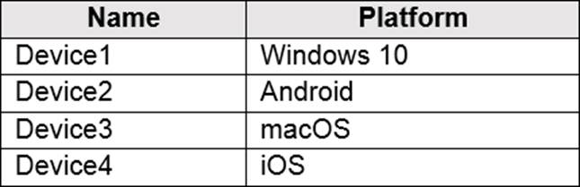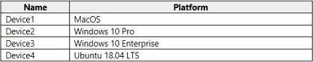Litware uses Microsoft Intune for device management and has the enrolled devices shown in the following table.