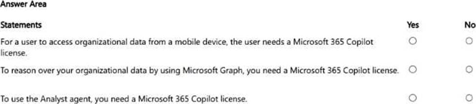 4. Your company has a Microsoft 365 subscription and uses Microsoft 365 Copilot Chat. Some users need to build and use declarative agents that can access work data.