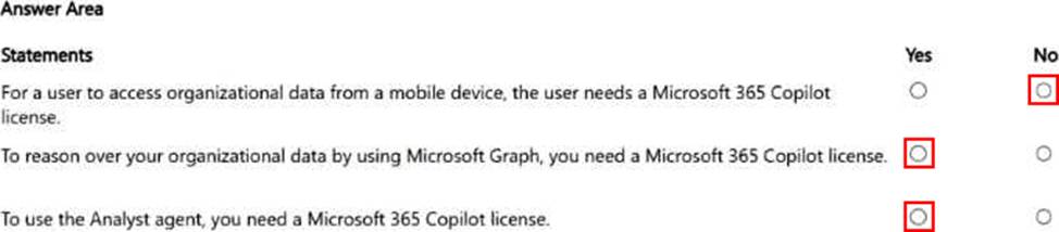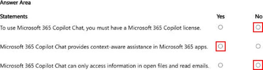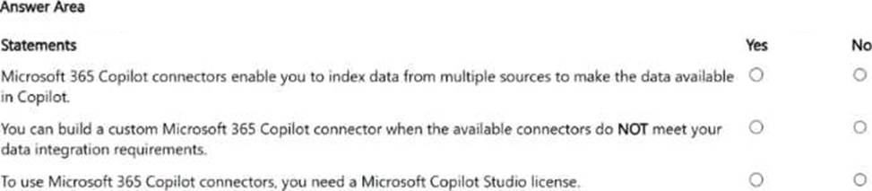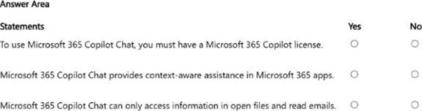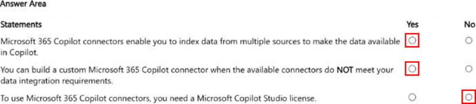 - For each of the following statements, select Yes if the statement is true. Otherwise, select No. NOTE: Each correct selection is worth one point.