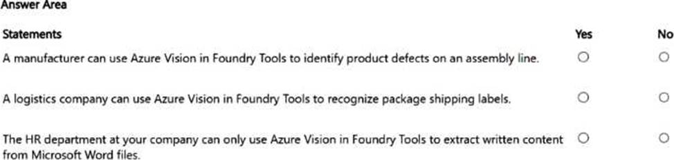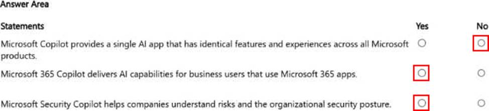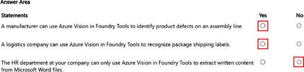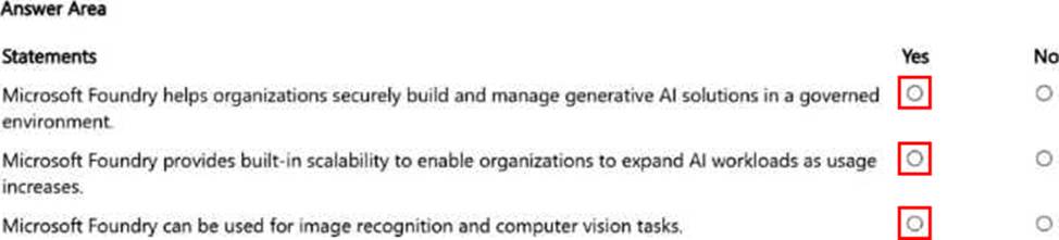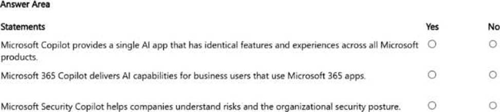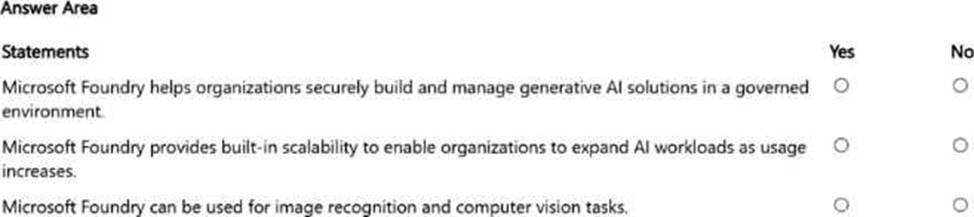 For each of the following statements, select Yes if the statement is true. Otherwise, select No.