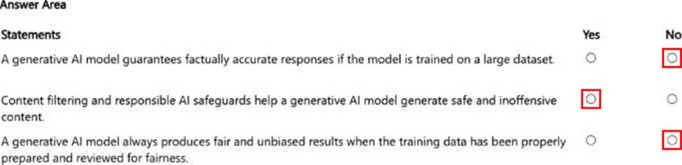 1. Your company uses a fine-tuned generative AI solution trained on data that is representative of the general population. You discover that some of the generated responses include inappropriate or