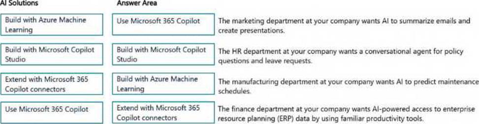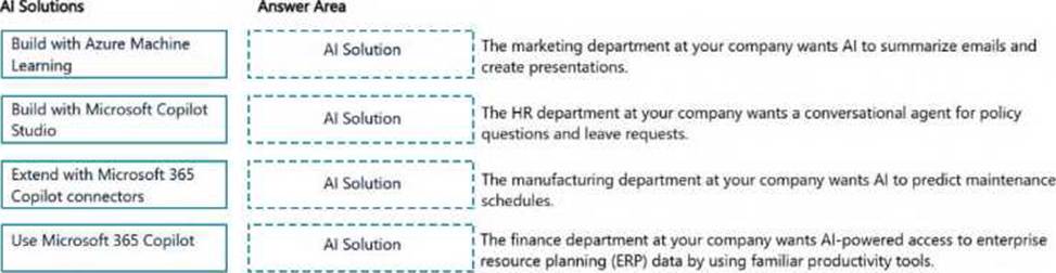 Match the business scenario to the appropriate AI solution design approach. Each solution may be used once, more than once, or not at all.