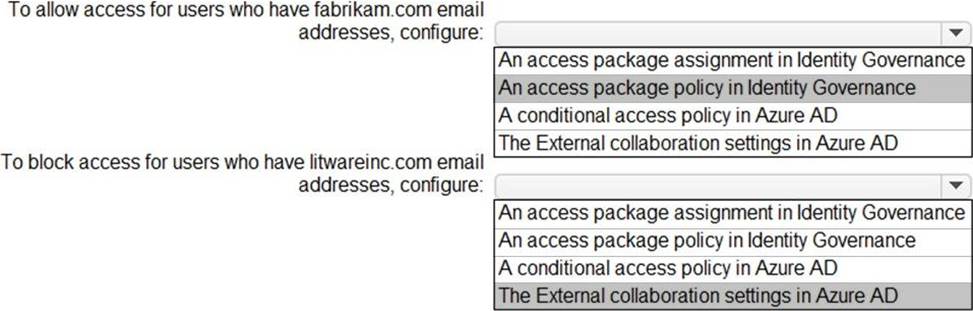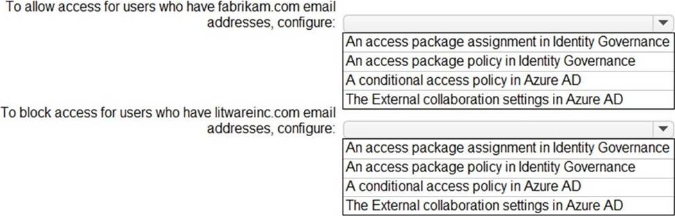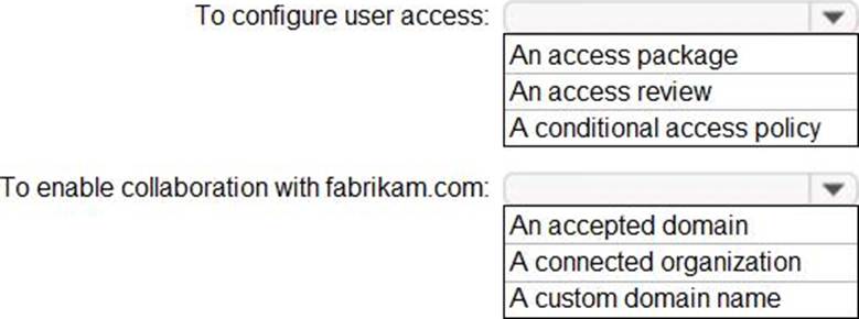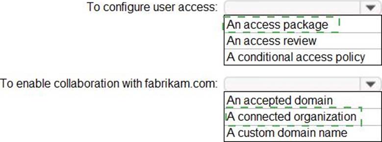 • Fabrikam users must have access to the marketing department's SharePoint site for a maximum of 90 days.
