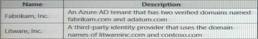 Contoso has a partnership with a company named Fabrikam, Inc Fabcricam has an Azure Active Diretory (Azure AD) tenant named fabrikam.com.
