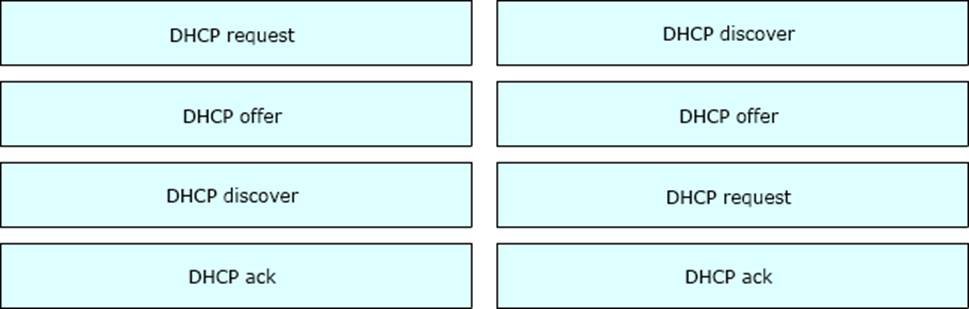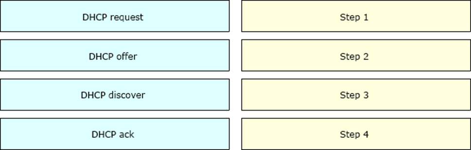 Drag and drop the DHCP messages that are exchanged between a client and an AP into the order they are exchanged on the right.