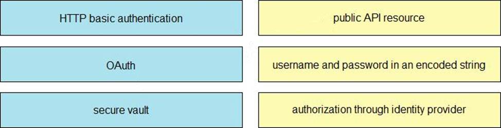 Drag and drop the REST API authentication methods from the left onto their descriptions on the right.