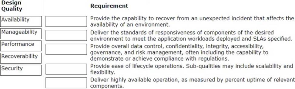 Drag and drop each Design Quality from the left into the box corresponding to the correct requirement on the right.