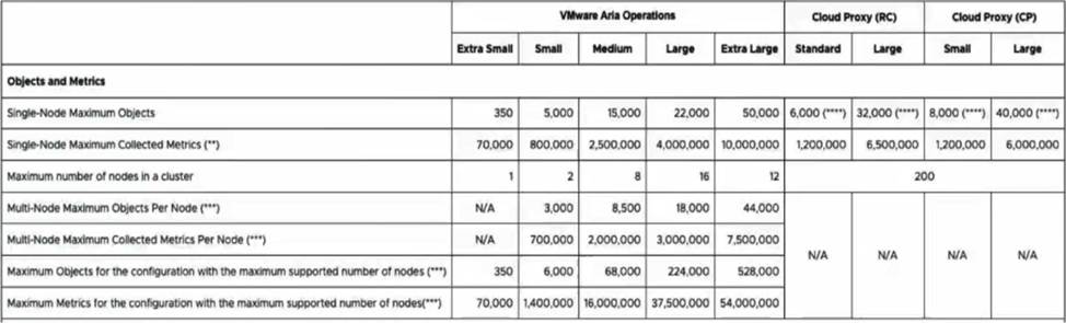 7. Refer to the exhibit. A customer wants to collect data from 120,000 objects and given the VMware Aria Operations sizing guide.