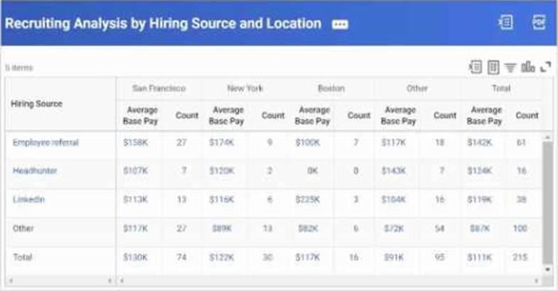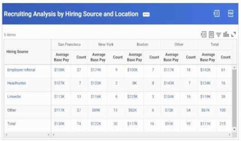 The recruiting manager wants to dynamically refine the output results for various hiring sources and locations.