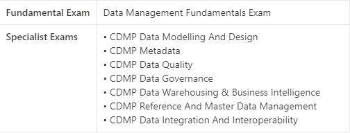 CDMP Master: 80% pass in Data Management Fundamentals Exam and 80% pass in 2 specialist exams